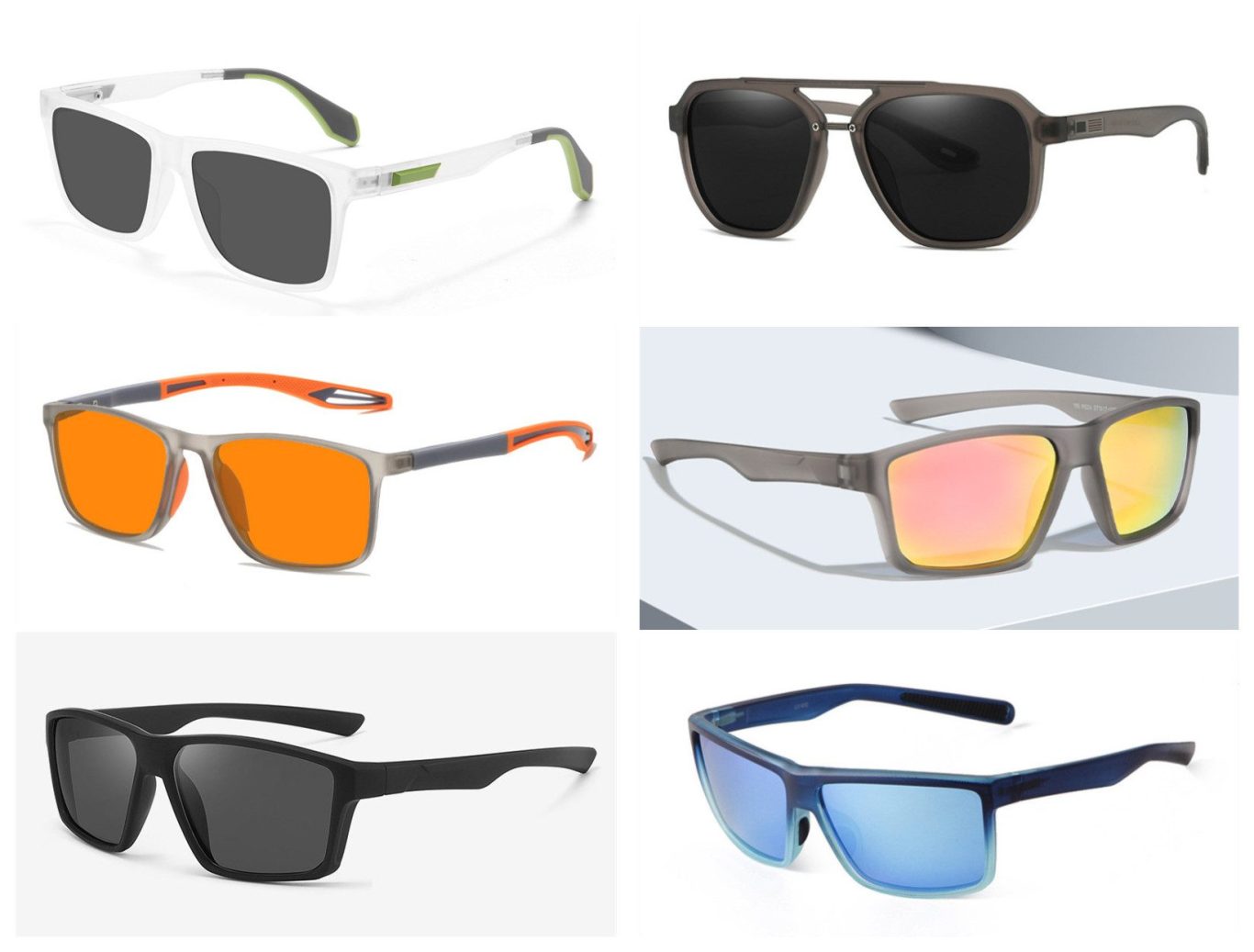 Multiple unique styles of sports sunglasses are
